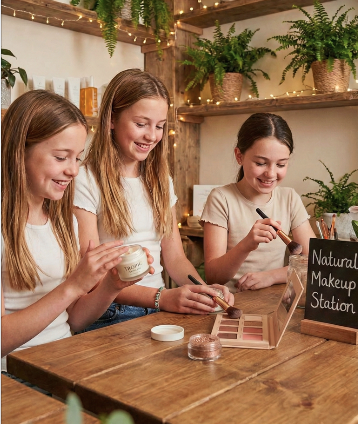 A gentle, spa‑like space where tweens are invited to slow down, and explore simple skincare and light, natural makeup learning kindness towards their changing bodies.